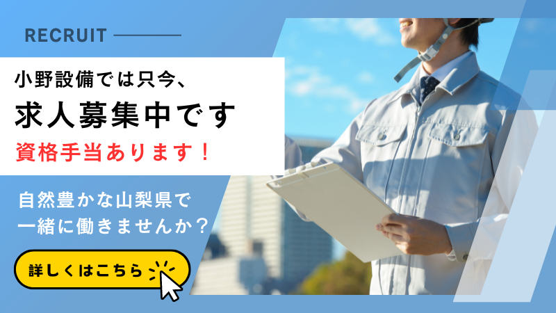 | 昭和57年12月 | 小野設備として建設業許可を受ける 山梨県知事許可(般-57)第5685号 |